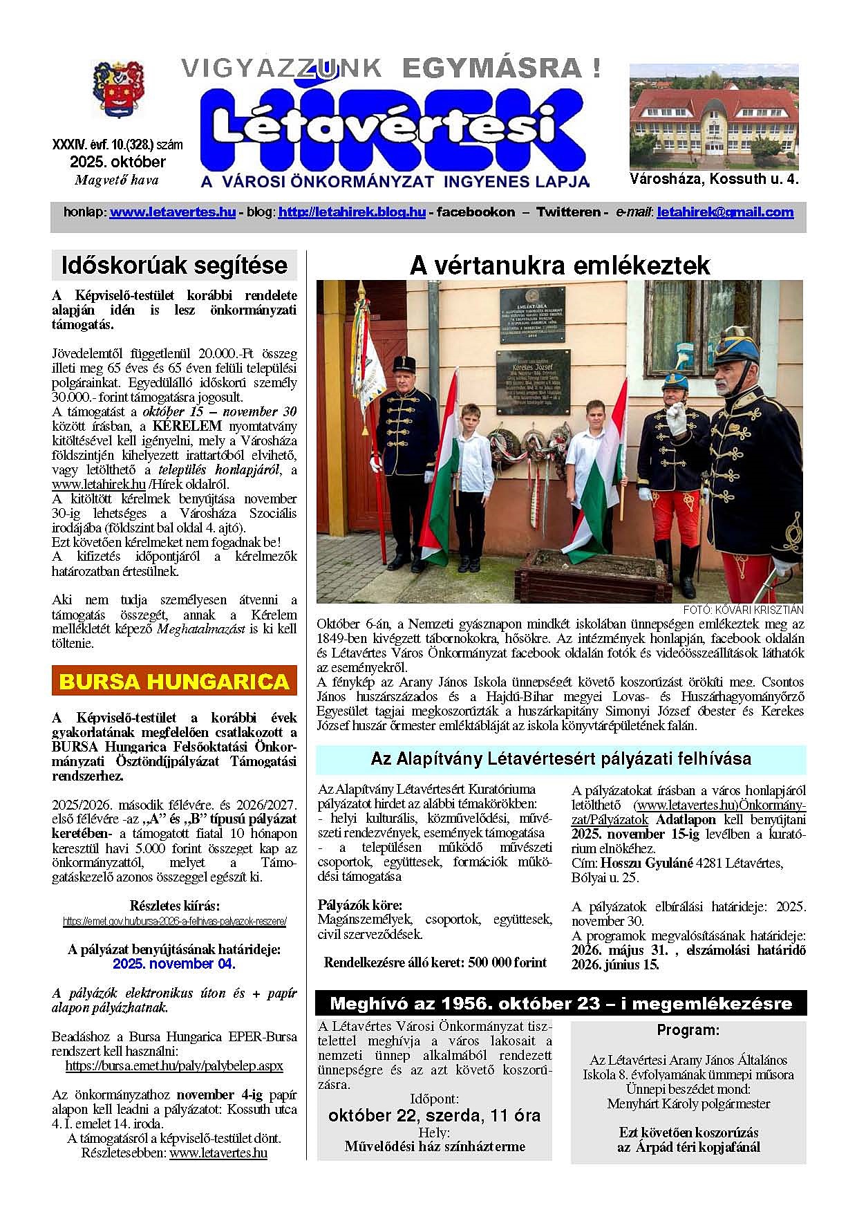 Címkék: újság Létavértes Turóczi Barnabás Létavértes Városi Önkormányzat Lértavértesi Hírek 2024. október